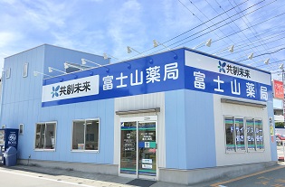 名前のとおり富士山の麓にあり、富士山カラーの外壁がトレードマークの薬局です。整形外科の門前で足や腰を痛めている方が多くいらっしゃるため、お車に乗ったままでの対応が可能で、店舗内には楽に腰掛けられるベンチが備え付けられています。最新型のマッサージチェアや喫茶スペース、患者様の声を聞きながら取り揃えたOTC商品が充実しています。土日祝日も営業しておりますので患者様のご都合に合わせてご利用いただけます。今後も地域の方々にゆっくりおくつろぎいただけるような薬局づくりを心がけていきます。