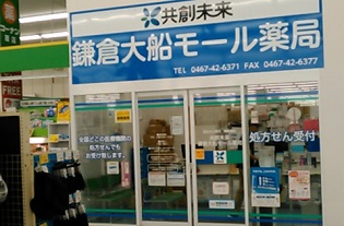 当薬局はJR大船駅よりバスで5分程の、ホームセンターコーナン鎌倉大船モール店内にございます。 湘南鎌倉総合病院から多くの患者様にご来局頂いております。2000品目の医薬品を取り揃えており、広域の医療機関からの処方せんにも対応できるかと思います。お薬をご用意させて頂く間にお買い物や食事などもでき、何かと便利です。調剤はもちろん一類医薬品や血糖測定器、排卵検査薬もご用意しております。 皆様の「かかりつけ薬局」としてお役に立てるよう努力して参ります。何卒よろしくお願い致します。