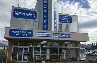 新発田駅から当薬局まで徒歩3分とかなり近く、リウマチセンターの受診患者様は県外からも多く来局されます。駐車場を広くとってあり多くの患者様にきていただいておりますがその反面、冬は除雪作業が大変です。