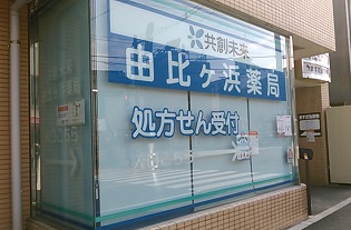 由比ガ浜と言えば海! 海をテーマに薬局の中をイメージして作りました。近くにファミリークリニックもあり、子供からお年寄りの方まで安心して利用できる、居心地のいい薬局作りを目指しています。店舗内は血圧測定器や給茶機もおいてありますので、気軽にお立ち寄りください。処方箋を持ってきていただいた方には駐車場30分無料券も配布しております。