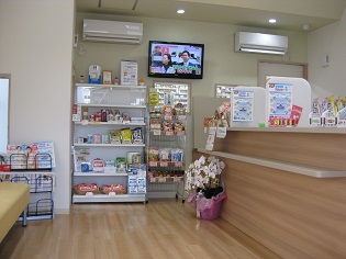 天井が高くて、光もたくさん入る明るくて綺麗な薬局になりました。入り口がスロープになっていて、車いすの方や足の不自由な方でも出入りしやすくなっています。また手すりもつけてあります。健康食品や低刺激化粧品の取り扱いもありますので、処方箋をお持ちでない方にも気軽にお立ち寄りいただけます。